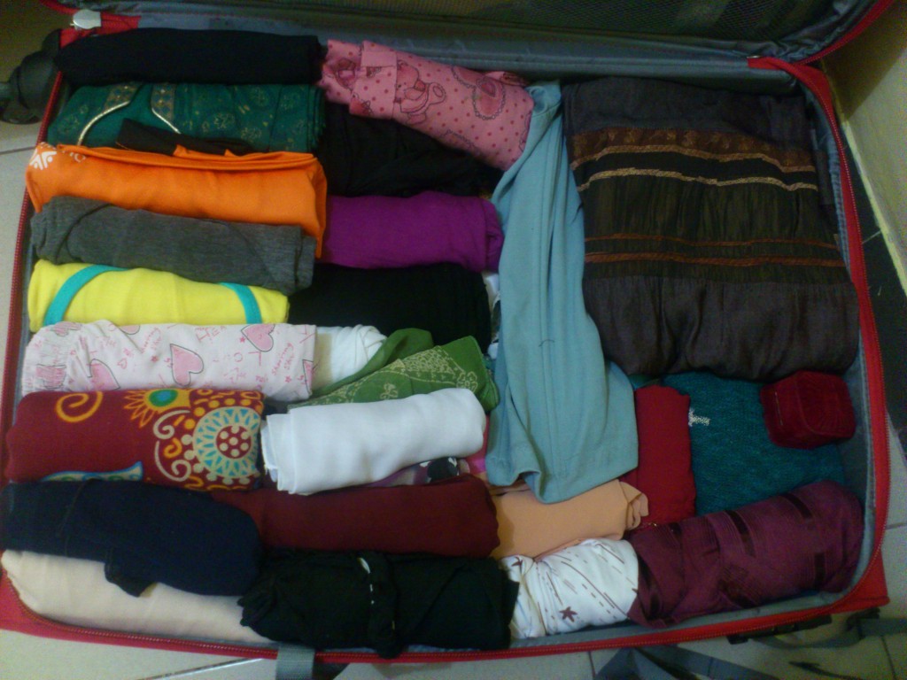 Packing baju yang digulung membuat banyak tempat kosong dan muat banyak