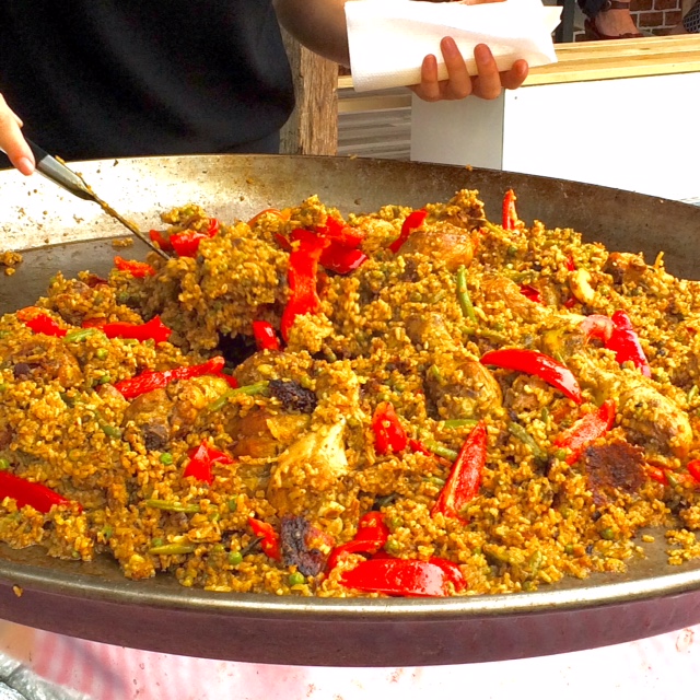 Paella. Awalnya mau beli, tapi melihat paha ayam yang besar muncul disitu jadinya mengurungkan niat. Aslinya saya tidak tahu Paella ini apa, dan Suami sudah pergi entah kemana, jadinya hanya melirik sekilas. Saya pikir ini semacam nasi goreng ayam. ternyata bukan. Makanan dari Spanyol.