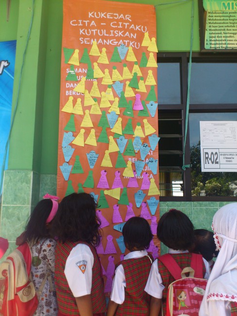 Membaca cita-cita yang tertempel. Semoga mereka diberikan kemudahan mewujudkan impian dimasa depan