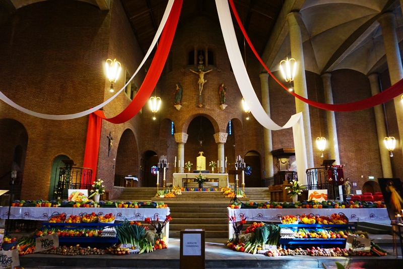 Selain stan di luar ruangan, ada juga produk pertanian yang dijual di dalam gereja.