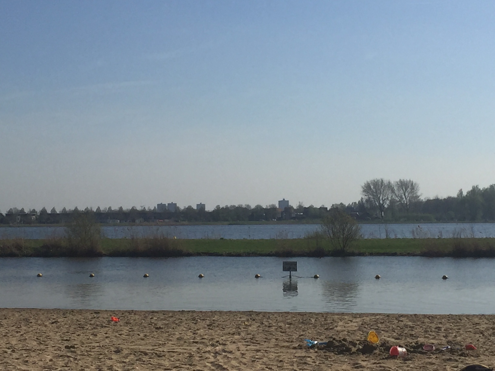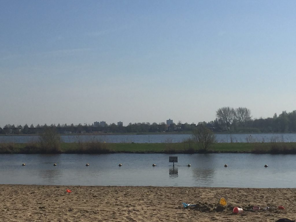 Ada danau dekat rumah. Jalan kaki hanya 15 menit saja. Sewaktu kami ke sana, waduh ramainya tidak karuan. Semua berenang. Mau ambil foto saja sampai tidak bisa karena semua sudut ada orang pakai baju renang. Kan melanggar privasi kalau saya mengambil foto. kami duduk-duduk di bawah pohon, sesekali main pasir juga. Nah, beberapa hari setelahnya, kami ke danau ke kota sebelah di Zoetermeer. Ini danaunya lebih besar dari yang dekat rumah. Tapi ramainya juga tidak karuan. Sewaktu kami pertama sampai, saya mencium harum sate. Langsung dong ya saya mencari sumber harum sate itu, ternyata ada keluarga yang sedang memanggang sate dan panggangannya sama seperti panggangan di Indonesia. Langsung membayangkan makan sate pakai lontong trus minumnya es degan *halusinasi sesekali.
