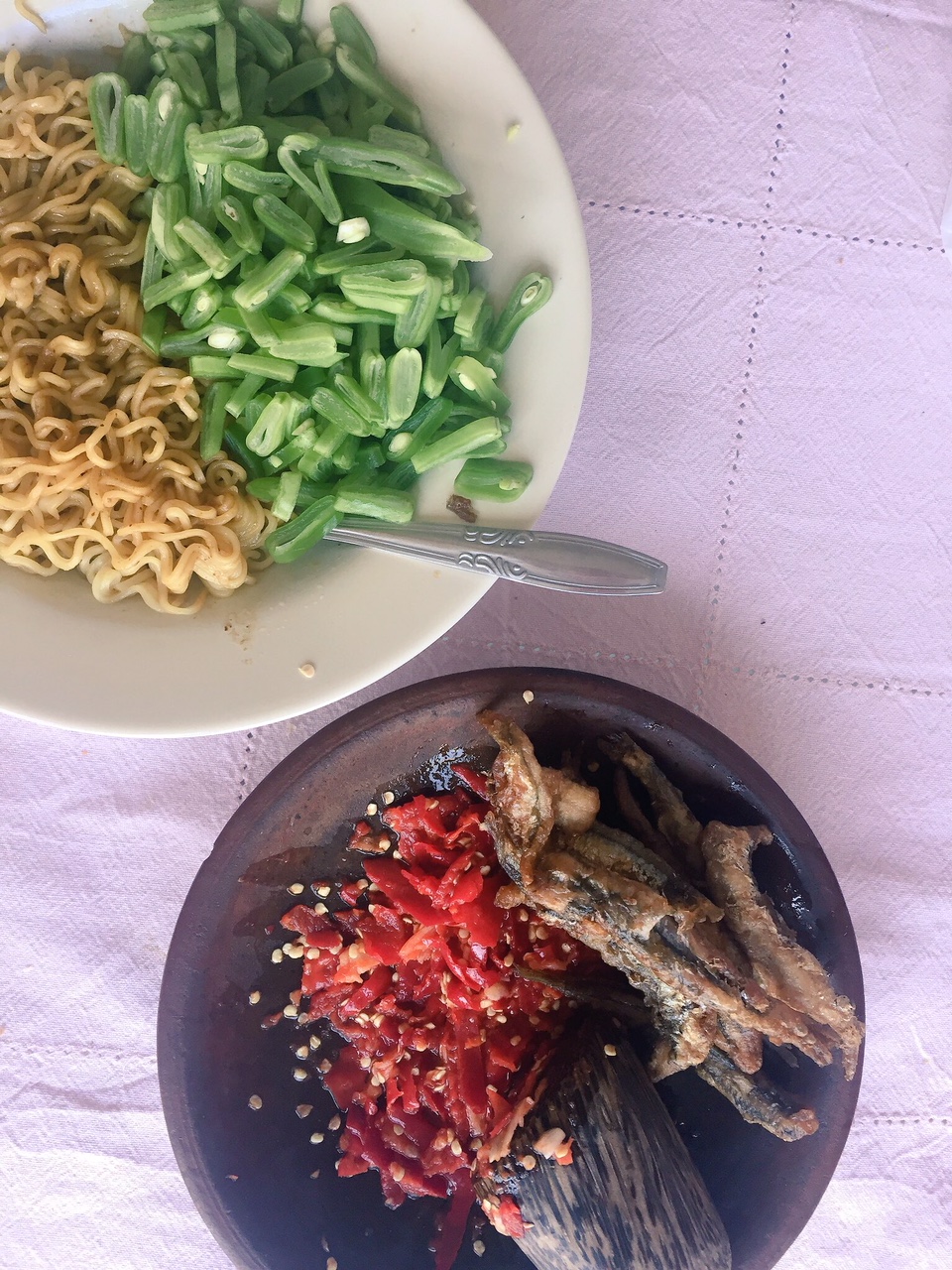 Langsung lahap makan pakai ikan beli di pasar meskipun menunya ga nyambung :)))