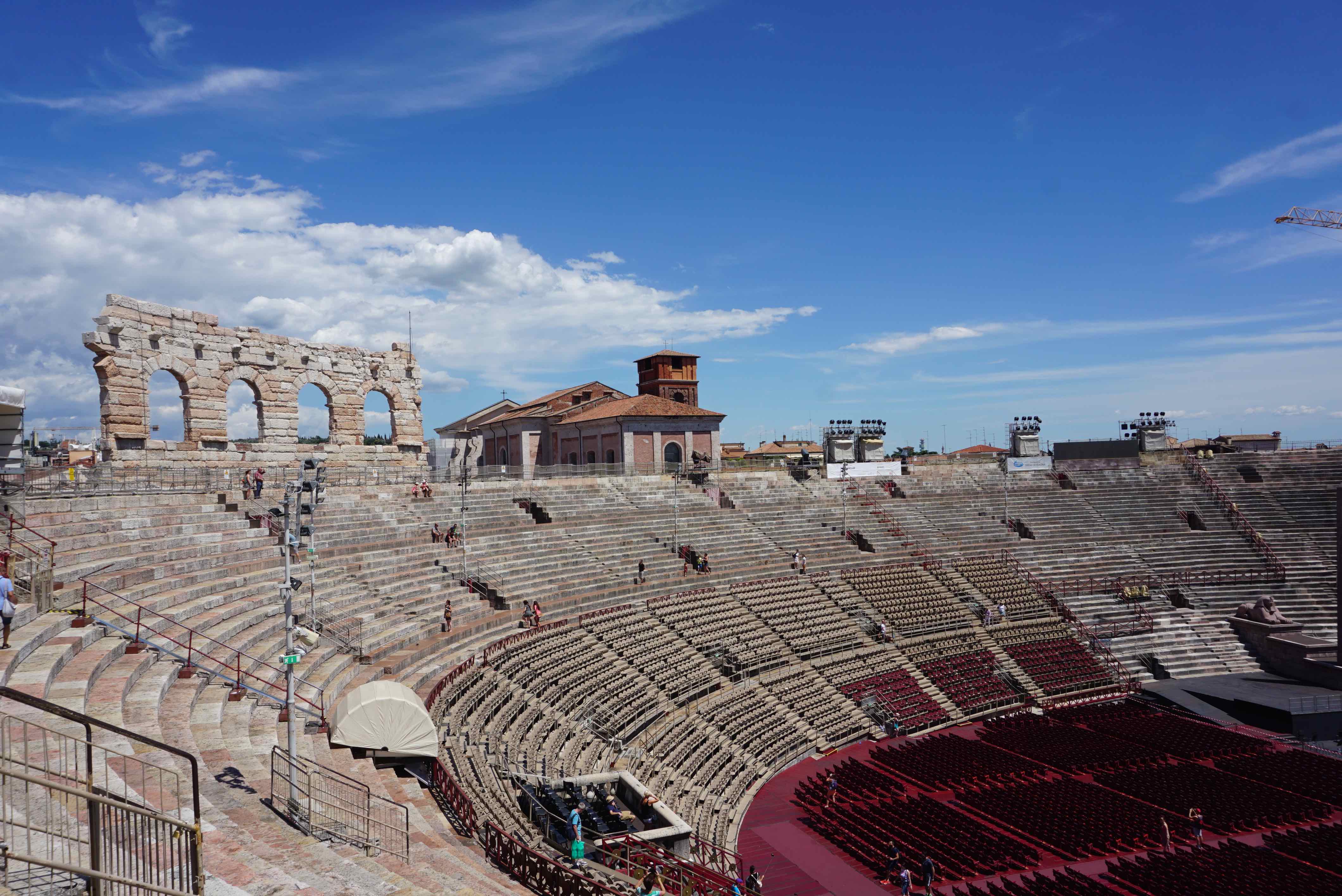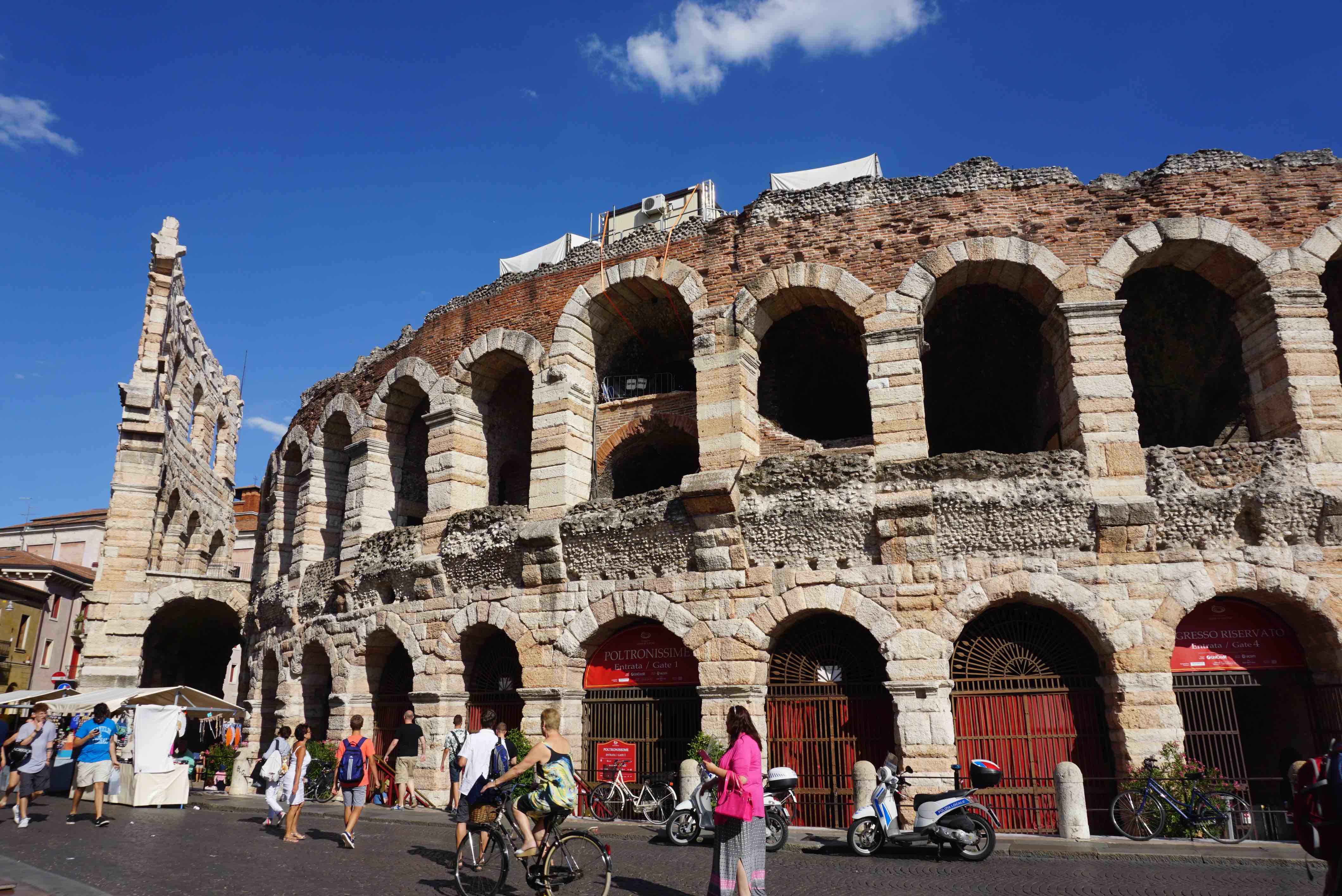 Verona adalah dua kota yang terakhir kami kunjungi saat road trip selama di Italia, setelah dari Venezia. Letak kota ini tidak jauh dari Venezia. Kami hanya menginap satu malam di Verona, itu sudah cukup untuk mengelilingi pusat kotanya. Senangnya lagi, di Verona ada Amphitheatre dan lumayan besar. Saya selalu menuliskan bahwa kami berdua memang punya ketertarikan mengunjungi kota-kota yang mempunyai catatan sejarah berhubungan dengan amphitheatre.