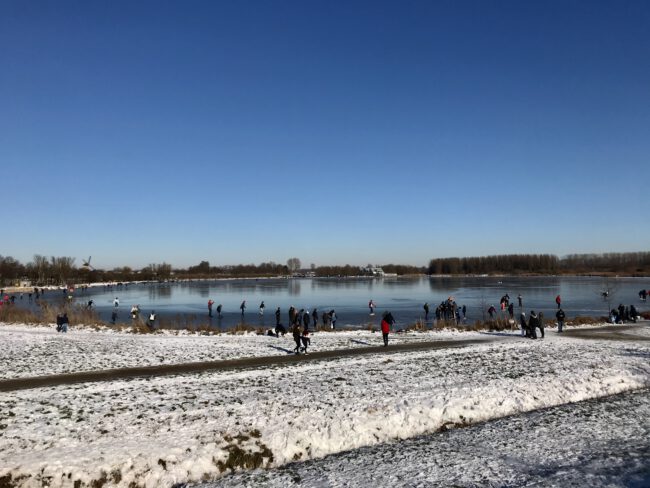 Melihat orang – orang bersuka cita dengan datangnya salju tebal, air sungai dan danau yang membeku, bisa bermain ice skating di udara terbuka, dan benar – benar menikmati suasana selama seminggu, itu juga bahagia yang saya rasakan. Merasa mereka melupakan dulu apa yang terjadi saat itu, menikmati suasana yang ada. Berita di TV pun menyiarkan betapa salju kali ini seperti memberikan suasana yang berbeda di tengah Corona dan hard lockdown di Belanda. Yang diwawancarai sangat antusias memanfaatkan suasana Belanda yang bersalju.
