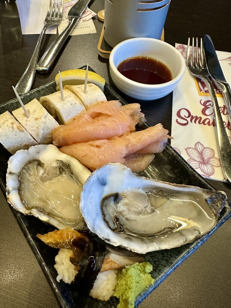 Ya lumayanlah, menunya enak – enak meski secara pilihan makanan, restaurant AYCE yang biasa kami datangi lebih banyak. Tapi untuk suasan baru, restaurant ini bagus. Anak – anak juga senang. Suami juga puas dengan makanannya. Harganya, disesuaikan dengan spesial Natal.