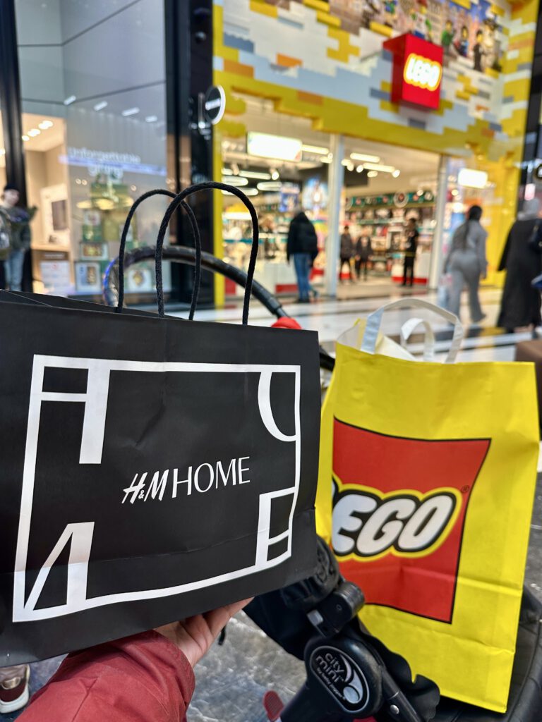 Anak – anak dibelikan Lego (seperti biasa), saya membeli pengharum ruangan yang sedang diskon dari HnM Home, ke toko buku saya semangat membeli 1 buku, dan suami membeli sepatu. Anak kicik minta dibelikan boneka saat di Hnm Home.