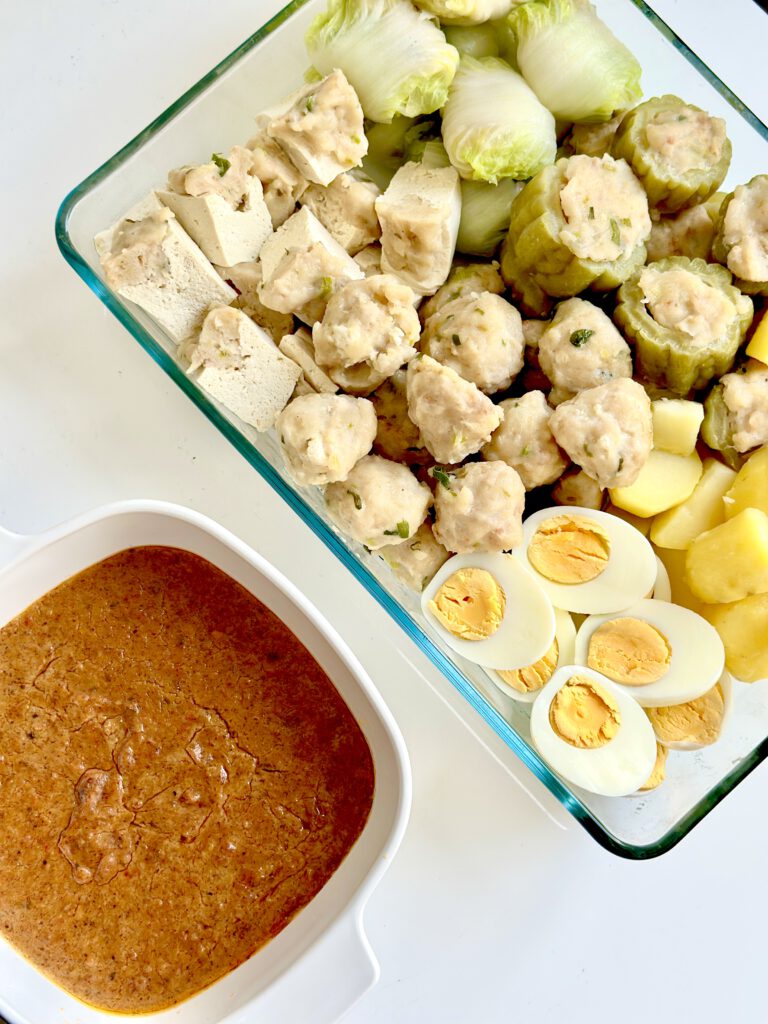 Pertengahan bulan, saya dan beberapa teman melakukan potluck di salah satu rumah mereka. Saya yang awalnya akan membawa soto Madura (Soto Daging) lalu H-1 berubah pikiran dengan membuat siomay hahaha masak sesuai mood. Saya membuat siomay yang lengkap dengan kentang, tahu, pare, sawi putih, telor, dan pentol. Karena malas membuat bumbu siomaynya, saya campur saja sambel pecel buatan Ibu dengan pasta kacang lalu saya tambahi beberapa bumbu. Enak ternyata. Semua yang datang (termasuk para suamu teman – teman yang lidah Belanda) doyan semua. Laris manis. Saya juga membawa banana cake kebanggaan pasukan di rumah :)))