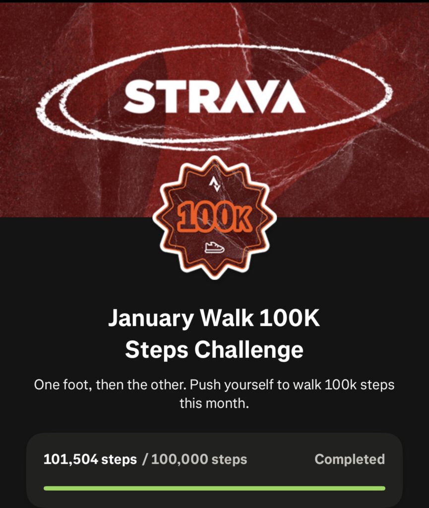 Hasilnya, bisa menyelesaikan beberapa tantangan yang saya ikuti di Strava. Hampir seluruhnya saya selesaikan. Bahkan tantangan jalan kaki 100 ribu langkah pun tuntas saya selesaikan. Olahraga total 30 jam dalam bulan ini pun saya selesaikan. Senang rasanya. Bukan hanya badan jadi makin sehat, target pribadi terpenuhi, juga mental saya lebih baik. Bulan Februari karena mulai Ramadan, saya coba lebih pelan yang penting konsisten.