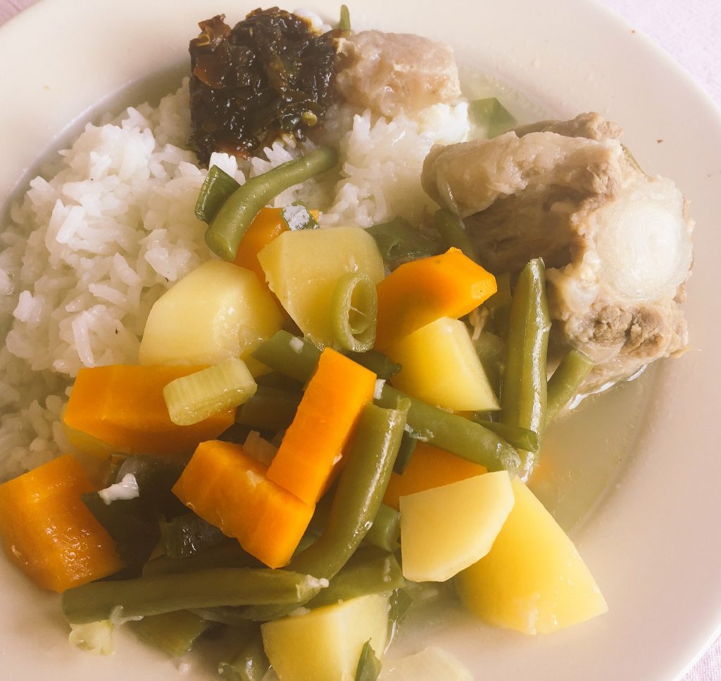 Ada beberapa hal yang saya baru tahu dari Masakan Manado. Bruine bonensoep atau Brenebon soup atau sop kacang merah, ini sup khas Manado. Saya tanya apakah asalnya dari Belanda karena namanya kok bahasa Belanda sekali. Patricia jawab, mungkin iya. Aslinya kalau di Manado menggunakan kaki babi sebagai kaldu dan dagingnya. Tapi karena banyak pendatang yang muslim di Manado, akhirnya disesuaikan buat mereka yang tidak makan babi, bisa menggunakan daging sapi yang ada lemaknya. Kemarin Patricia memasak menggunakan daging sapi yang ada lemaknya. Super lekker! saya sampai minta resepnya ke dia karena pasukan di rumah suka semua dan lahap makannya dengan soup ini.